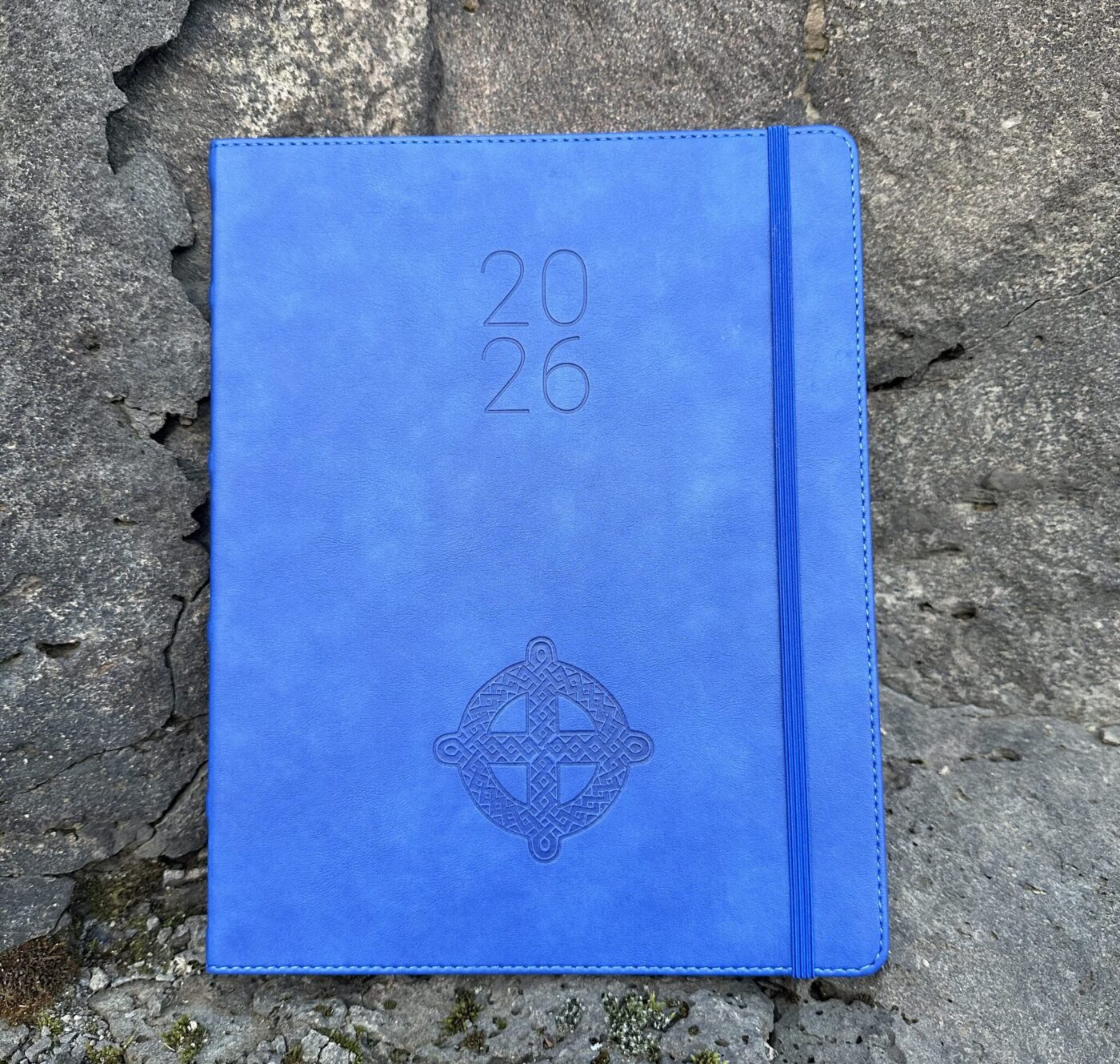 Dagbókin er komin fyrir árið 2026. Hún er í stærðinni 26,5 x 21,2 cm og með merki Ásatrúarfélagins fyrir neðan miðju.