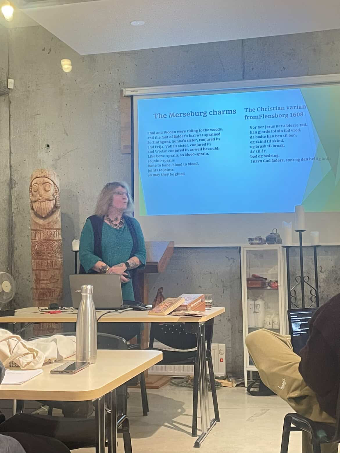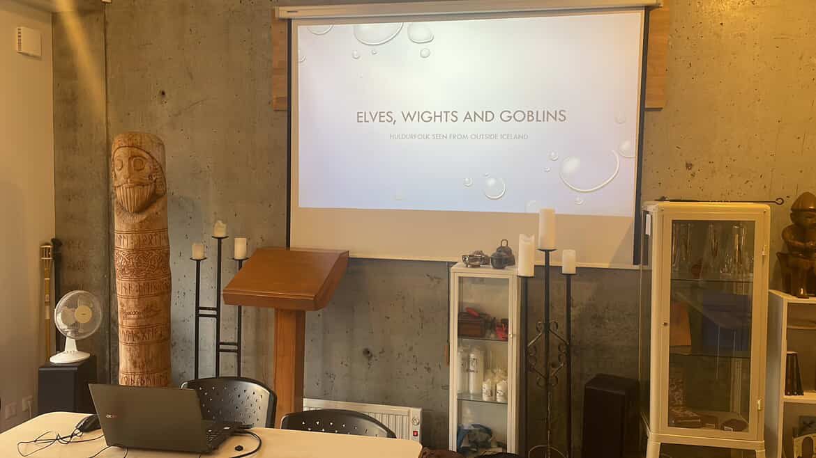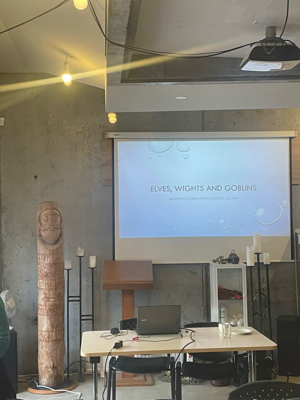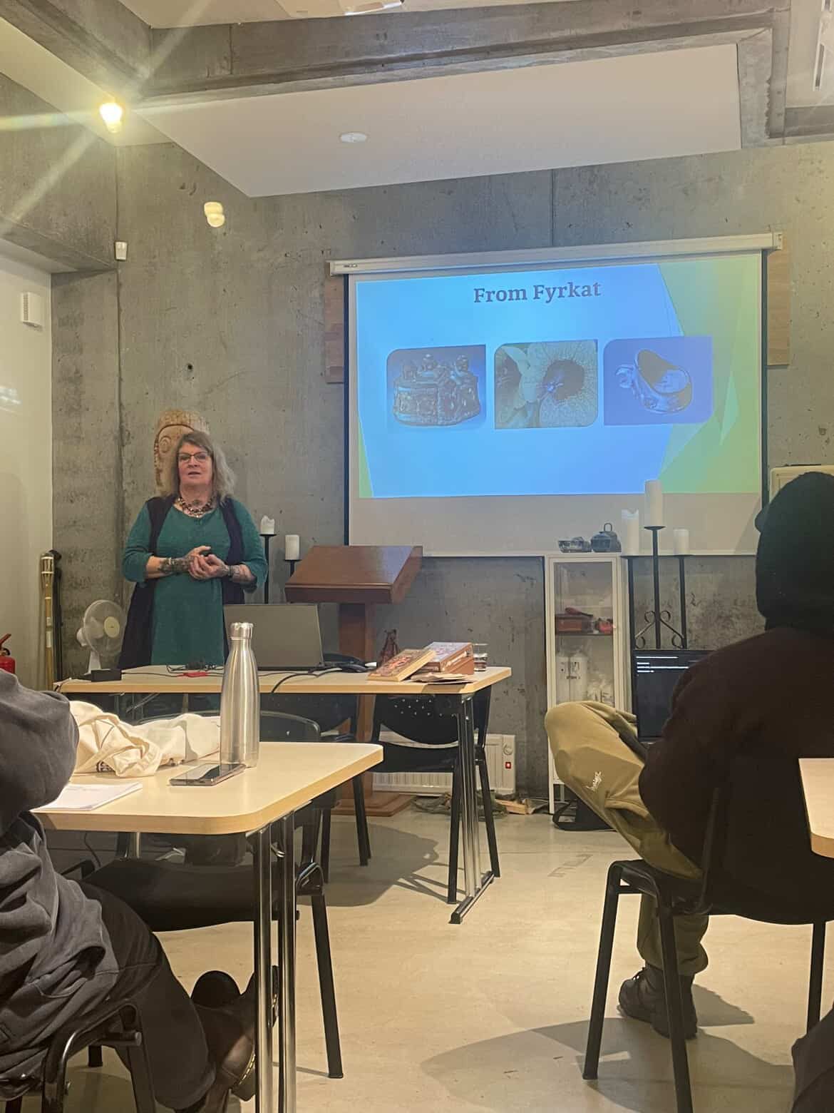 Á sunnudeginum hélt hún tvö erindi, annars vegar um danskar og íslenskar huldurverur og hins vegar um hlutverk völvunnar.