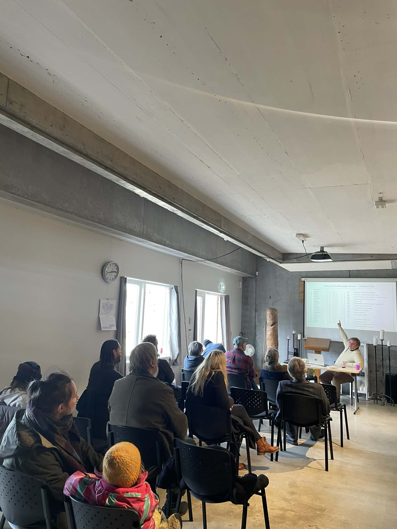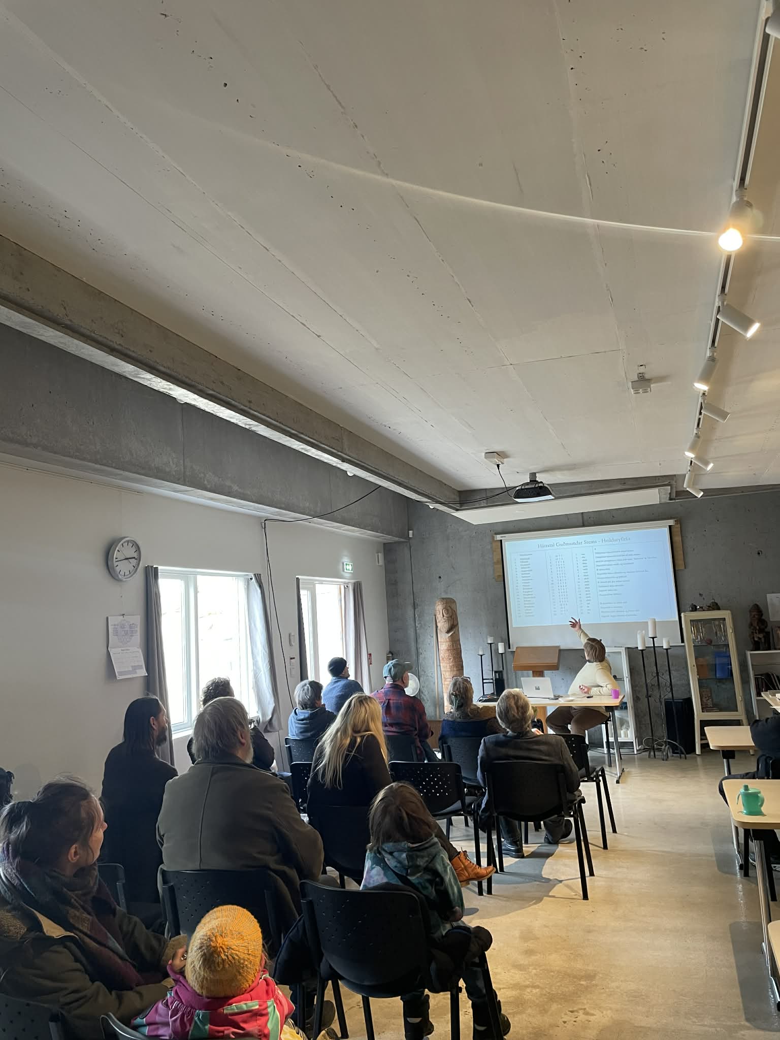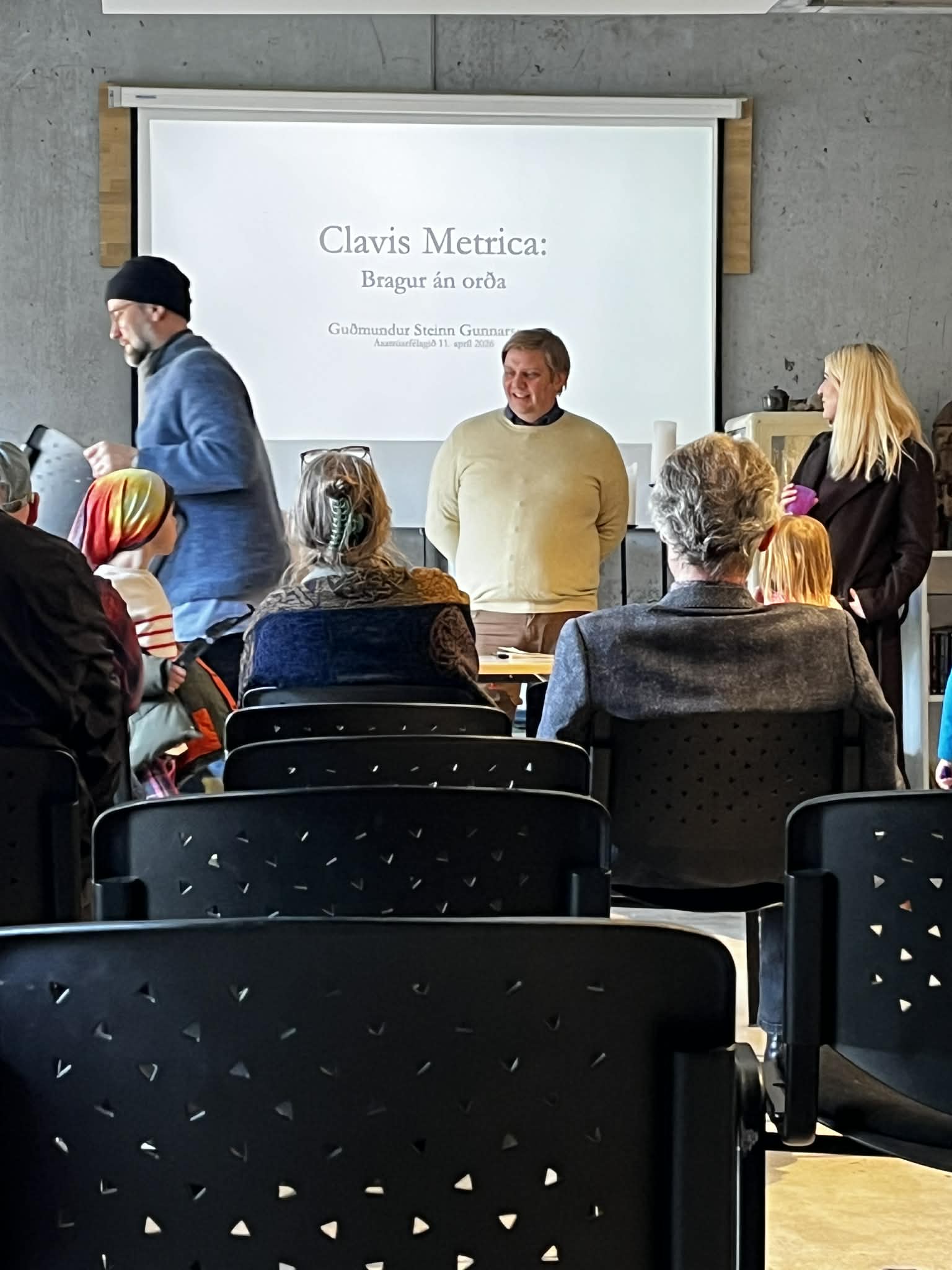 Erindi Guðmundar Steins Gunnarssonar um háttatalið/tónverkið Clavic Metrica var vel sótt á laugardaginn eins og sjá má á myndum.