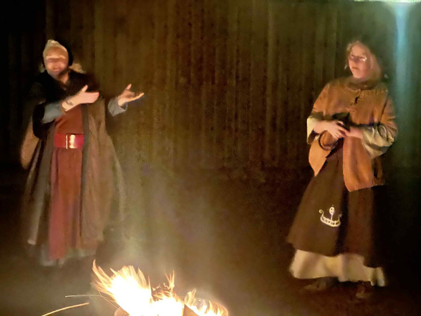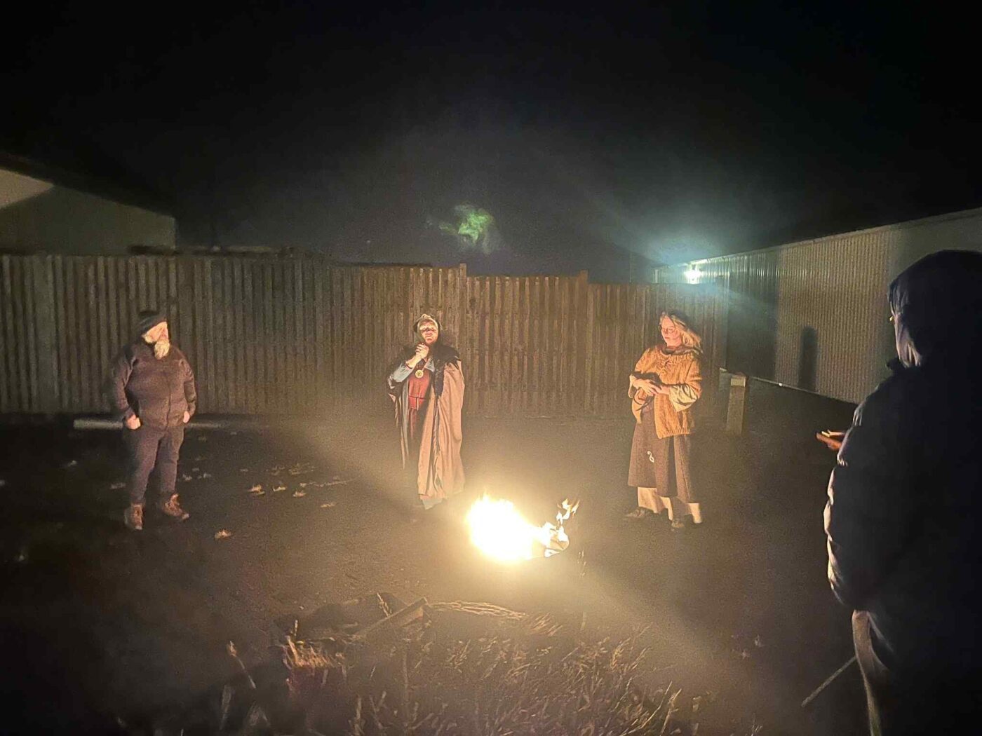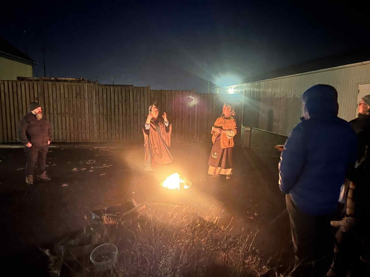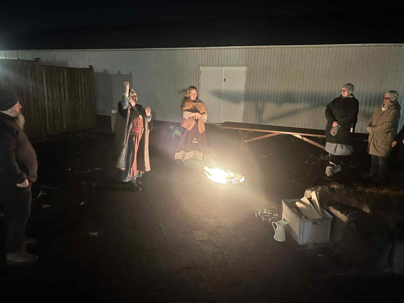 Anna Leif Auðar Elídóttir Leirárgoði og Jóhanna Harðardóttir Kjalnesingagoði helguðu jólablót með myndarlegum hópi við Stúkuhúsið á Akranesi.Ef vel er að gáð má sjá vætti sveima nálægt Jóhönnu á einni myndinni.