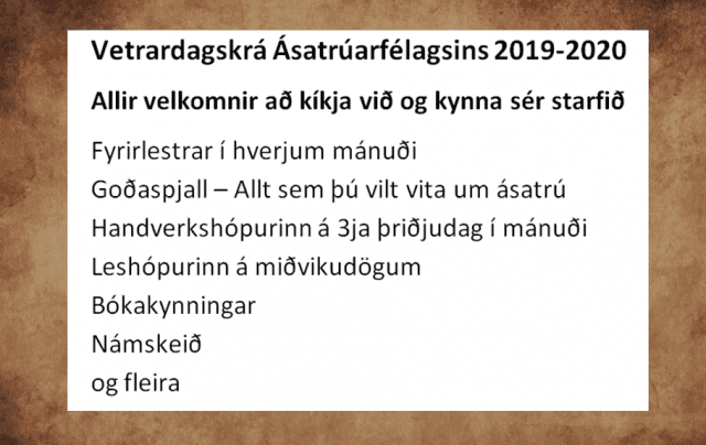 Kynning á vetrardagskrá Ásatrúarfélagsins 2019-2020